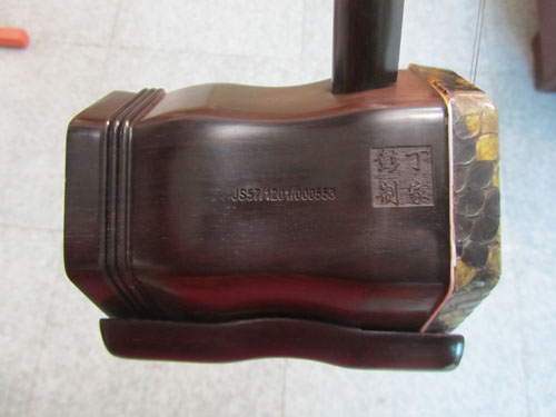 本款作品从大量明清旧家具,选出纹理色泽一致的优质老红木,蟒皮精选缅甸金花蟒尾部肛门以上,纤维弹性结构最好的3块,由丁家彭师傅精制,纯手工打造。工艺精湛,细腻,琴身全手工打磨,琴筒运用独有的更耗时的琴筒内膛制作工艺,以次获得更好的共振,有穿透力,爆发力,音色秀美,圆润,上下把位通畅和谐,高音更加清晰明亮,更能体现二胡之乡制琴精致和江南胡韵的独特风味.