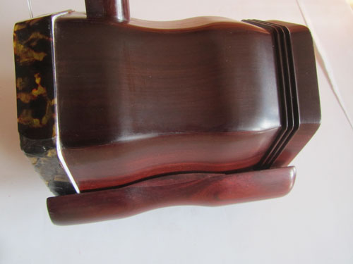 二胡精选纹理色泽统一性强的上等科特迪瓦小叶紫檀木和蟒蛇尾部优质蟒皮制作,由制作师丁家彭师傅精制,琴筒运用独有的更耗工时的琴筒内腔壁制作工艺,使成品二胡更易共振,以此获得更好的穿透力.爆发力,音色秀美,圆润。琴体采用苏州传统虫胶擦漆工艺,手工抛光打磨,可清晰显露出紫檀木细密的毛孔,整琴制作精致细腻,紫檀木新完工时由于经过砂纸打磨,随着使用时间加长,木料颜色逐渐会变深,成暗红黑色,经用手抚摩用软布擦拭木料表面会形成光亮的自然包浆,相当耐看