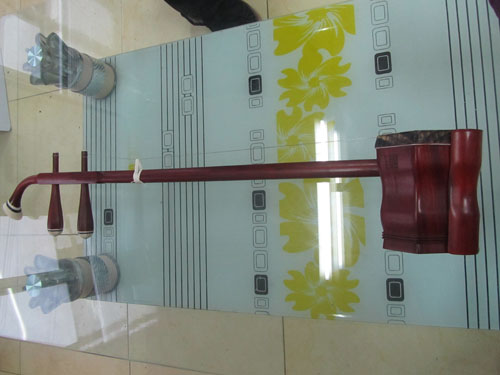 二胡精选纹理色泽统一性强的上等科特迪瓦小叶紫檀木和蟒蛇尾部优质蟒皮制作,由制作师丁家彭师傅精制,琴筒运用独有的更耗工时的琴筒内腔壁制作工艺,使成品二胡更易共振,以此获得更好的穿透力.爆发力,音色秀美,圆润。琴体采用苏州传统虫胶擦漆工艺,手工抛光打磨,可清晰显露出紫檀木细密的毛孔,整琴制作精致细腻,紫檀木新完工时由于经过砂纸打磨,随着使用时间加长,木料颜色逐渐会变深,成暗红黑色,经用手抚摩用软布擦拭木料表面会形成光亮的自然包浆,相当耐看